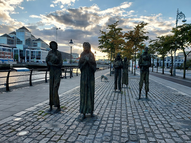 Am prins un apus superb, dar timid printre norii spectaculoși ai Irlandei, apus care se reflecta pe clădirile de sticlă și în râul Liffey. Recomand călduros o plimbare în această zonă pentru a admira peisajele desprinse dintr-o veritabilă capitală nordică. Puteți bifa de pe listă, desigur, Podul Memorial Talbot, Podul Samuel Beckett sau grupuri de sculpturi, precum cel intitulat "Famine".